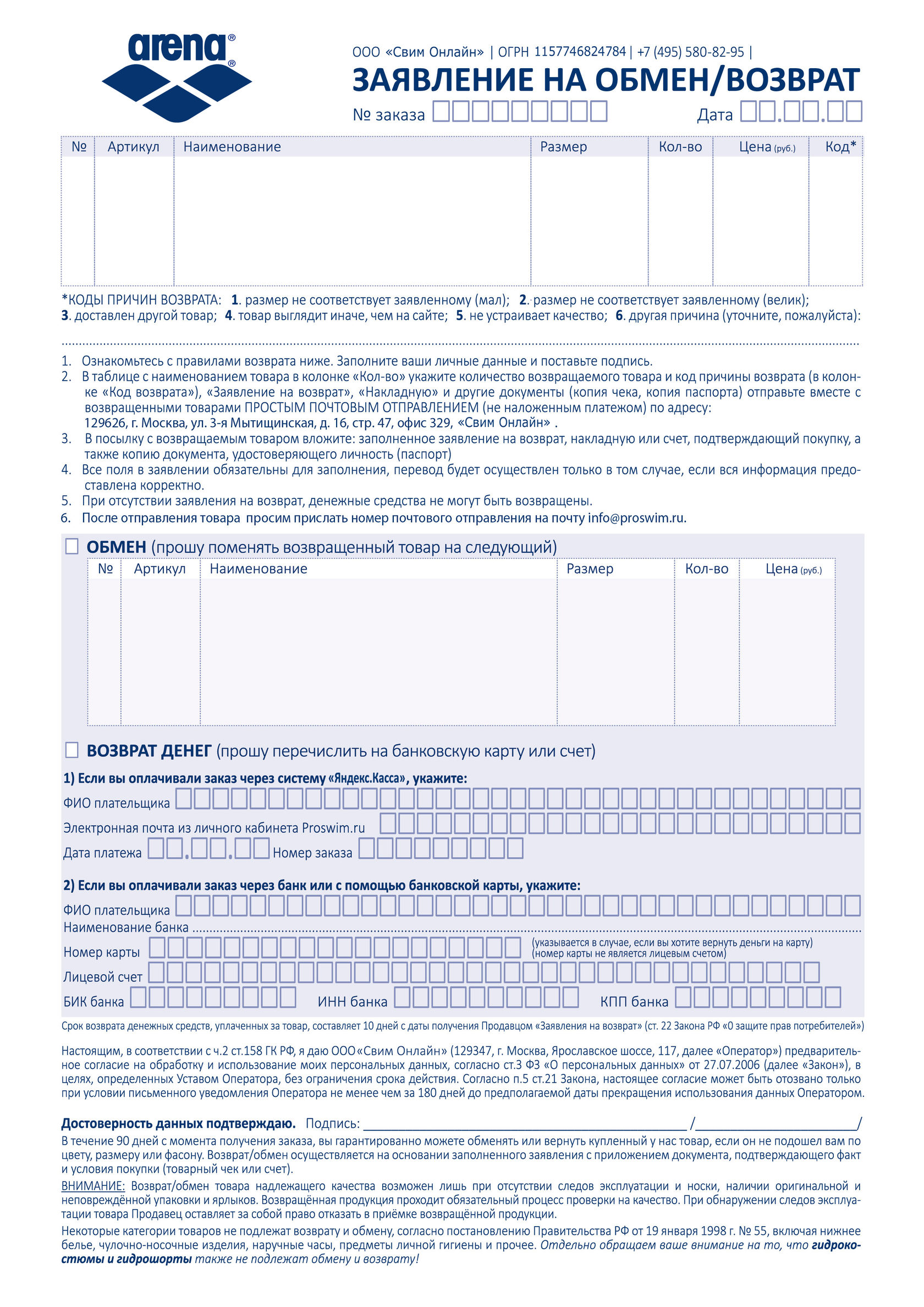 СКАЧАТЬ ЗАЯВЛЕНИЕ НА ОБМЕН/ВОЗВРАТ
